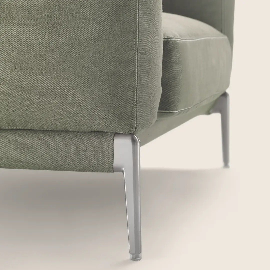 This stunning lounge chair, wrapped in a soft olive green fabric, features deep cushioned seating, generously padded armrests, and a supportive backrest for all-day relaxation. The minimalistic silhouette is complemented by polished chrome legs, creating a timeless piece that fits effortlessly into contemporary, minimalist, or modern interiors. Whether you’re reading, relaxing, or entertaining, this chair promises to be your new favourite spot.